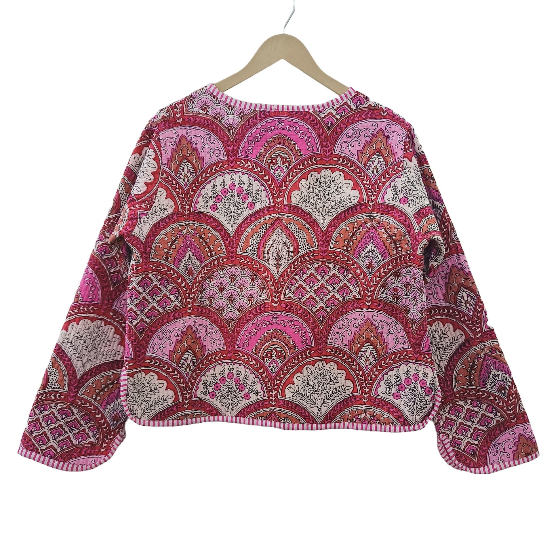 Lightweight Cotton Abstract Print Floral Pink Quilted Short Jacket Women Biker Jacket Perfect for Winter wear